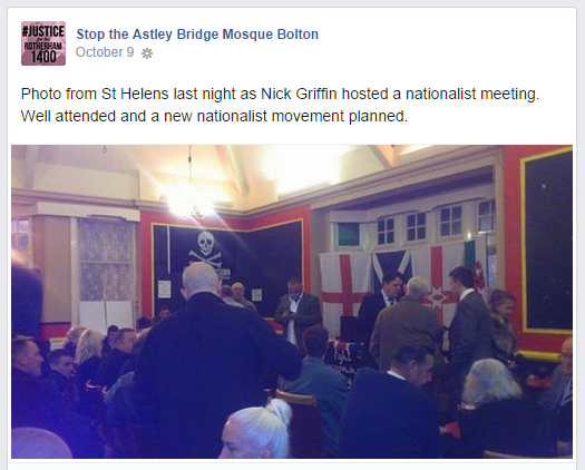 Morgan, who was the leading figure in the BNP’s Bolton branch, has just been expelled from the party. That is hardly surprising, given that he has openly sided with expelled former chairman Nick Griffin, using the Stop the Astley Mosque Facebook page to promote Griffin’s new far-right organisation, announced last week at a meeting in St Helens. The organisation, reportedly to be named Resistance, will be modeled on Génération Identitaire, notorious for its record of inciting anti-Muslim hatred in France.